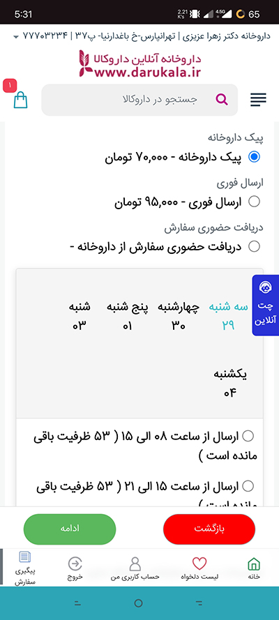 روش های پرداخت و ارسال در داروکالا: